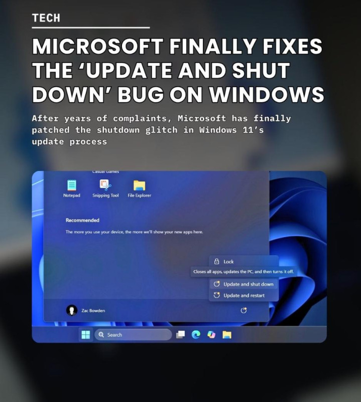 微软日前通过Windows 11 25H2的可选更新KB5067036,正式修复了困扰用户多年的“更新并关机”功能异常问题。该bug曾导致系统在完成更新后自动重启而非关机,此次修复标志着这一自2021年持续至今的系统交互缺陷终得解决。